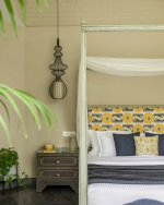 Anjuna is a fantastic choice for a Goa vacation. It is a beach with a character. The sand is clean and soft. There are swaying palm trees and red rocky outcrops strewn in some places. You will find many nightclubs, but they are at a distance from this rental villa, so you will not hear the loud music. You can visit the flea market and the Chapora Fort, which is close.