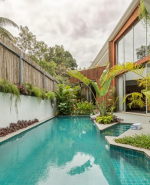 Swimming Pool – The ground floor living-dining space and a bedroom opens to the fabulous private pool. Just slide yourself into the pool for a relaxing swim. A small garden surrounds the pool. At one end, there is a poolside lounging area that can also double up as your alfresco dining place.