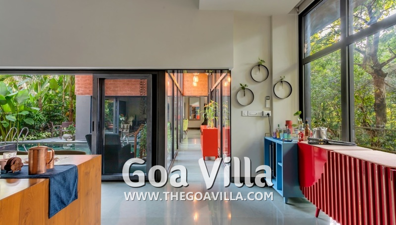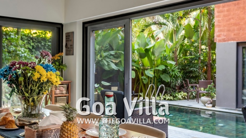 Assagao is one of the cleanest and greenest areas in Goa. You will be surrounded by tall trees and swaying palms. The villa is nestled within two forested hills. There are no large hotels or resorts nearby, which give you, complete privacy and solitude. All you will see are traditional Goan homes, tall trees, and quaint avenues. You will have complete peace here.