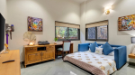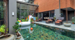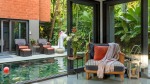 Swimming Pool – Everything is arranged around a tropical garden. Just outside the house, there is a beautiful private swimming pool, which is framed by a lush garden and many tall trees. There are two decks on both sides, both with seating areas, where you can sit and relax after your swim. On the upper floor balcony, you will find a second lounging area.