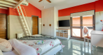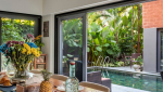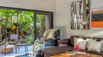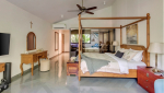 Living Room – From the inside, this villa for rent is very spacious. The décor is modern and elegant. The color of the walls, linen, cushions… everything reflects the tropics, making Estillo quite unique. The ground features a large hall, where you will find several sofas and armchairs around a modern coffee table. It is a very nice place to spend quality time with your group and make the most of your indoor time. This room has sliding glass doors that open to the pool and the deck – this is what really sets it apart. You will feel like you are a part of the outdoor area.