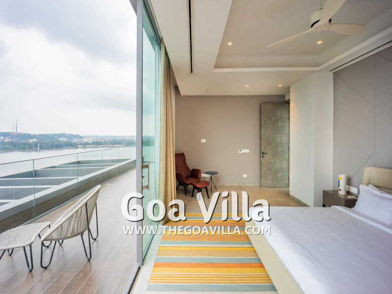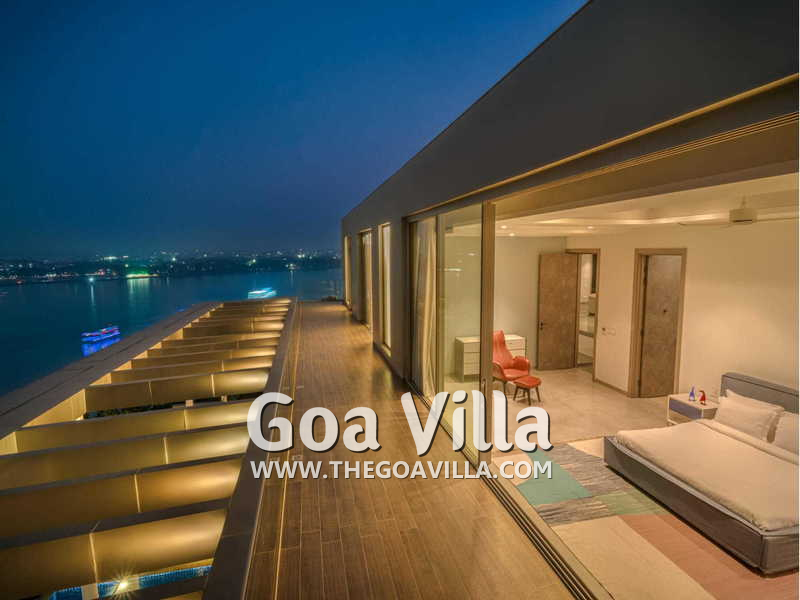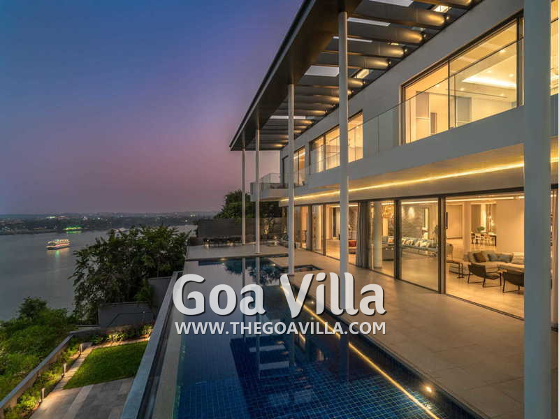 This fantastic property awaits your visit. It has a huge infinity pool, a terraced garden, rooms with balconies, gym, and gorgeous views. The villa is packed with many modern amenities. Fully staffed, the house has a chef, an assistant chef, butlers, and many housekeeping staff members. Relax and enjoy a luxury stay here. Get fabulous river and sea views. Watch the cruise and casino ships, and also the lights of Panaji.