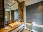 Bedrooms – All the 7 bedrooms have king beds, so the villa can sleep a total of 14 guests. They are all on the first floor and open to a fabulous river-facing balcony that offers gorgeous views throughout the day. You will also get these views from the beds. What a way to wake up every morning! There are chest of drawers, wardrobes, and private seating areas, which too offer these views. A minimalist décor and light color shades on the walls provide a calming effect, which will help you sleep better.