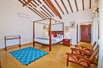 Villa of 4 bedrooms with its beautiful private swimming pool is located 50m from Anjuna beach. Anjuna is a picturesque coastal village on the Arabian Sea in Goa. Anjuna Beach, a sandy bay dotted with palm trees and black rocks, is a famous tourist destination in north Goa. Today it is known for his trance electronic music parties. Every Wednesday the growing flea market offers all kinds of goods: clothes, carpets, souvenirs, jewelry, food and its perfect attraction for the evening. Towards the north of the beach is the Chapel of St. Anthony, an old church with a whitewashed facade.