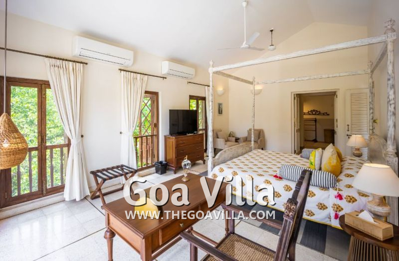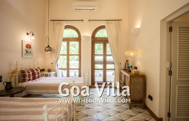 A luxury holiday villa in Siolim with 4 bedrooms that can sleep 10 guests! It offers beautiful nature views, a serene ambiance, and is close to many beaches and attractions in North Goa.