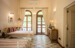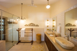 Bedrooms – The four bedrooms of Villa Fieldscapes are spread evenly over the two floors. All of them are ensuite and air-conditioned. Two have large king beds, one has a queen, and the fourth has twins. The master suite has a TV room, a study table, and offers private access to the patio. The ground floor rooms open to the wide garden through French doors. All of them have beautiful lampshades. They are airy and spacious.