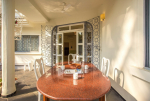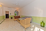 Living Room – The ground floor living room is spacious. There is a traditional cane sofa and glass-top center table, and also a modern sofa, and potted plants. This room is also air-conditioned. It is next to the private swimming pool.