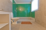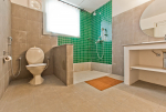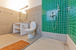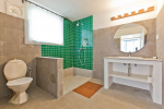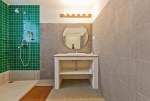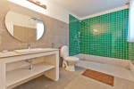 Bathrooms – Modern bathrooms with contemporary faucets, a large mirror, sink, mat, and a shower area with rainwater shower. All 3 bathrooms in this house are identical.