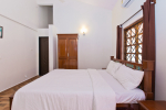 Goan House is a 5-bedroom villa at Vagator in North Goa. Luxury, Portuguese style construction with a private swimming pool. It is just 1.51 kilometers from the Chapora beach, and 2.29 kilometers away from the Vagator beach. Both Chapora Fort and the river are very close. All bedrooms in this villa are air-conditioned and en-suite. The private swimming pool has a shallow end for kids. Outdoor seating. Comfortable rooms with modern amenities and antique furniture.
