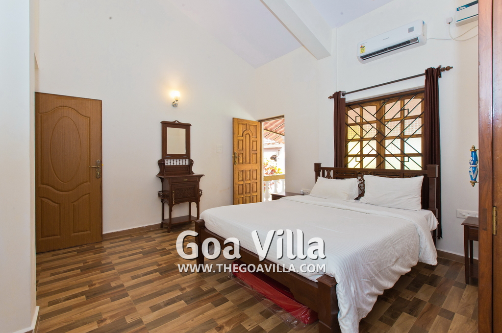 Goan House is located in a quiet and green neighborhood. It is very close to a small hill and the Chapora River. Several beaches are an easy drive away. Morjim beach is just across the river. This is a good villa in Goa for families, couples, honeymooners, and those who want close to nature and prefer a quiet vacation. Goan House can accommodate up to 10-15 people in the 5 bedrooms.