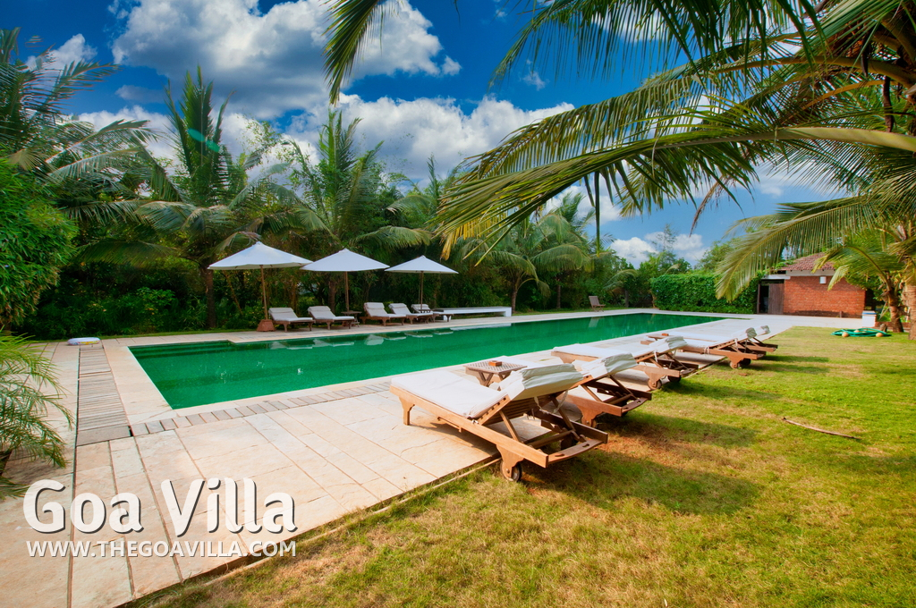 Luxury villa with private swimming pool and beautiful garden in Candolim. The villa has 5 bedrooms.