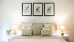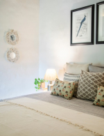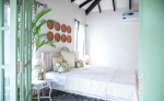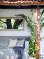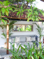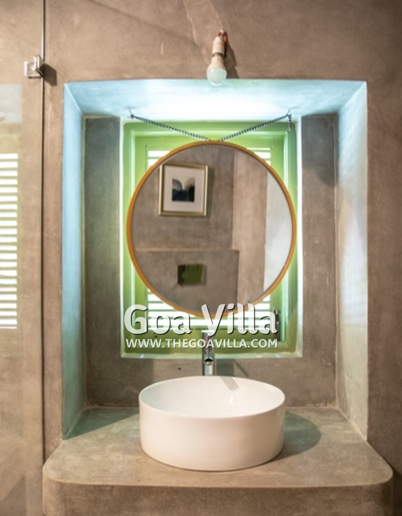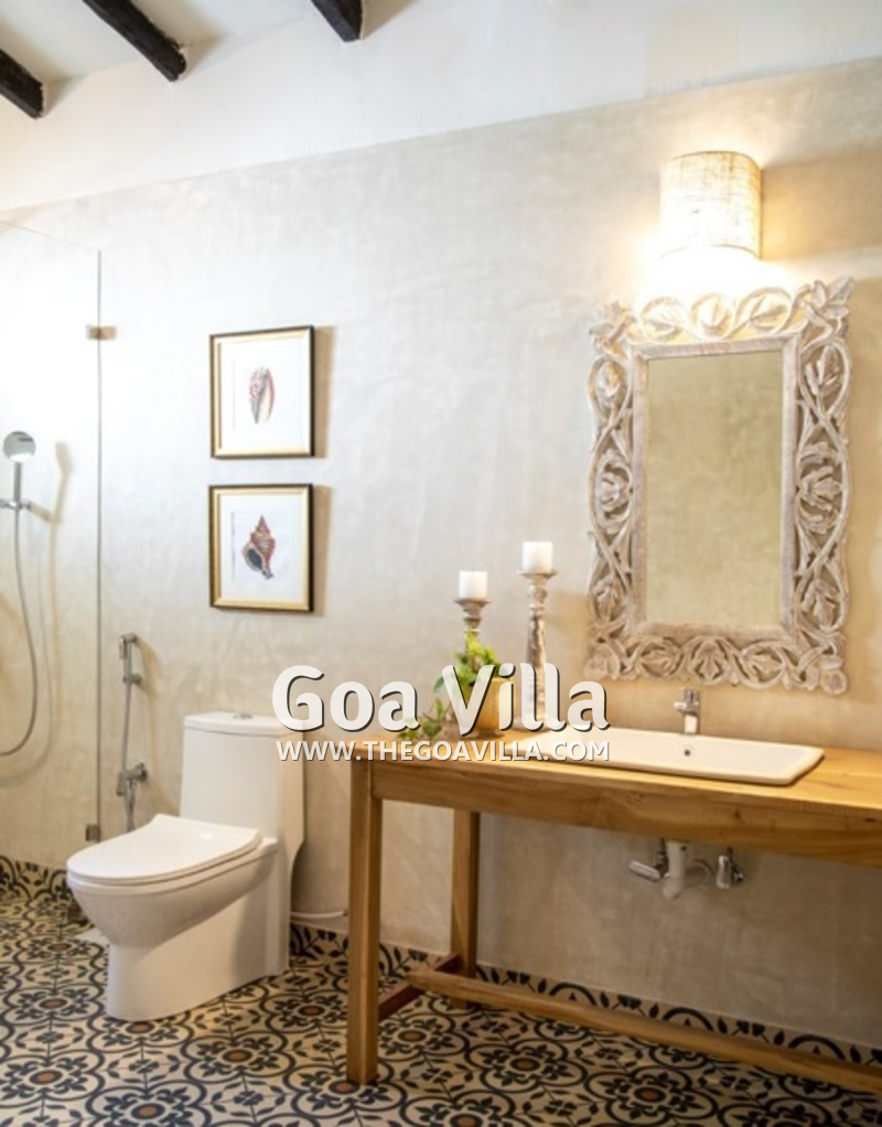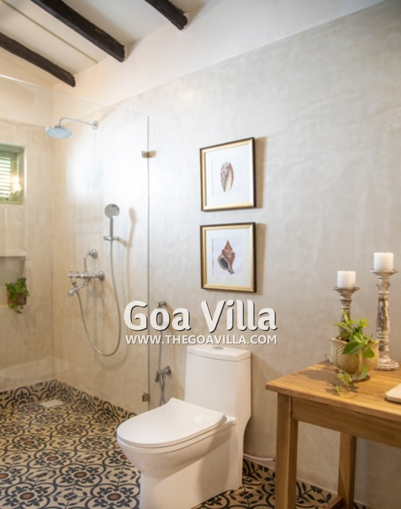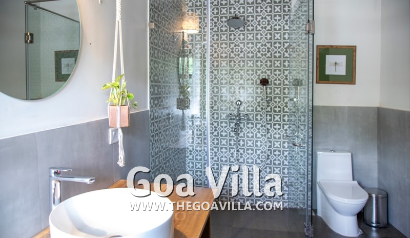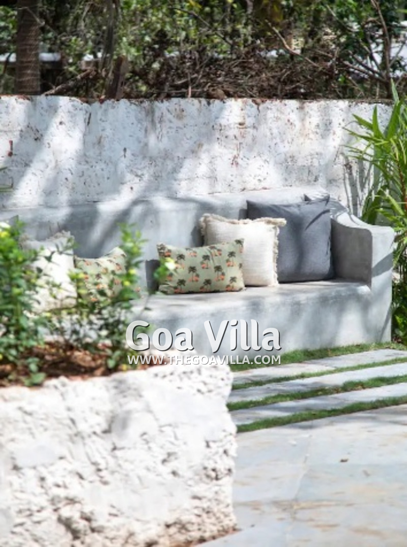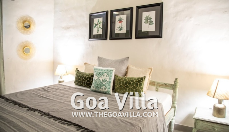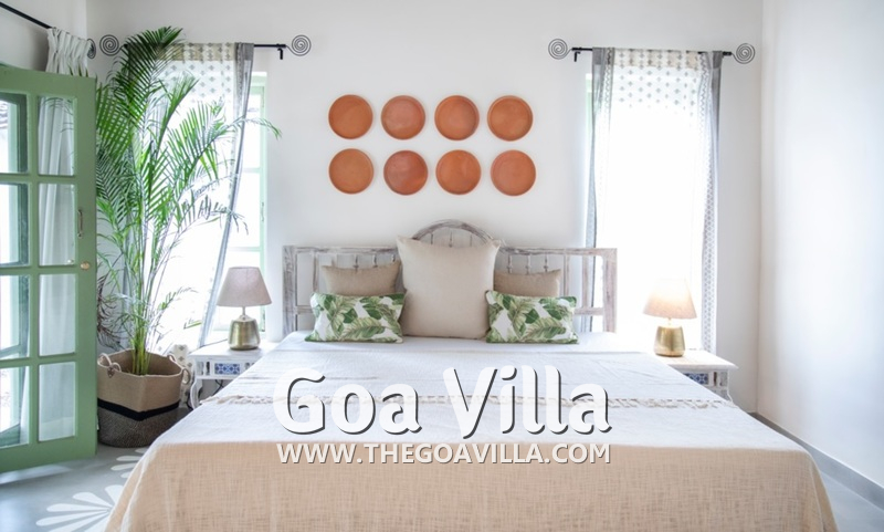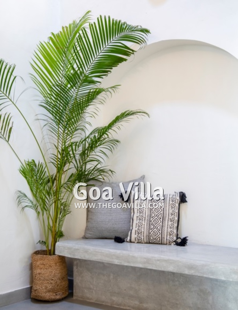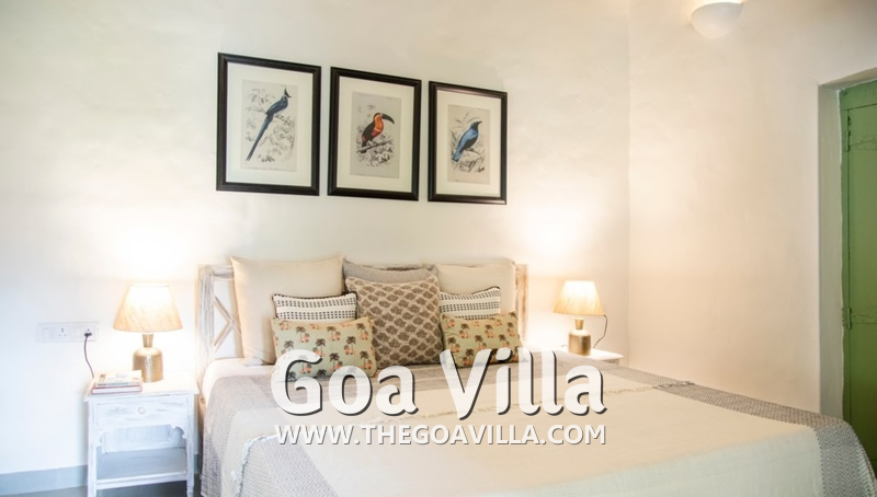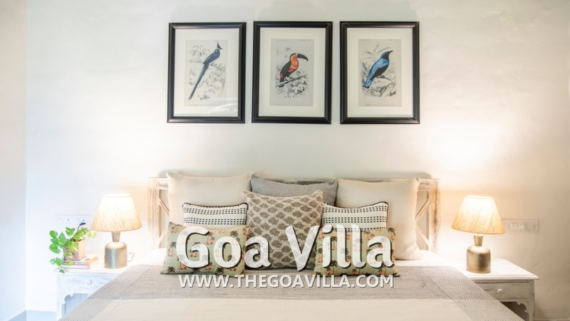 Bedrooms – This North Goa holiday villa has a total of 5 bedrooms for 10 guests. Some of them have twins while the others have doubles, so guests can choose from what they like. The master suite is in a separate unit away from the main property, offering more privacy. It opens to the swimming pool. A minimalist décor provides a soothing touch, which will help you sleep better. Indoor plants bring the surrounding nature inside. The walls have pictures of the birds you will find in the trees all around.