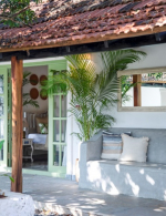 This beautiful villa for rent has a village location in North Goa. It is between Badem, Vagator, and Chapora, located just minutes away from fantastic beaches, forts, and restaurants, and yet, it is a world apart from the crowded touristy places. The villa is surrounded by idyllic nature. This is a very serene and quiet neighborhood. All around, you will find coconut palms, quaint streets, traditional homes, and lush greenery. A forested hill rises sharply from the backside of this house. The setting is so scenic that you can easily spend many days just cherishing the lovely nature all around.