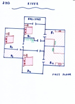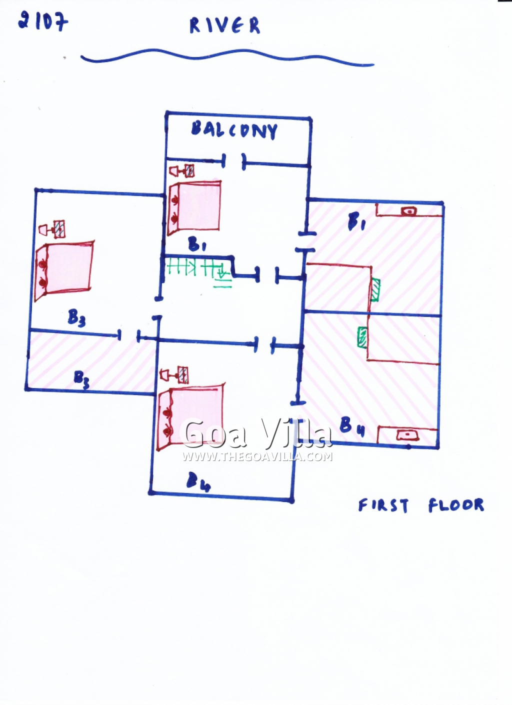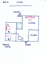 - Total of two entrances in the villa — from the front (from the pool) and from the riverside.