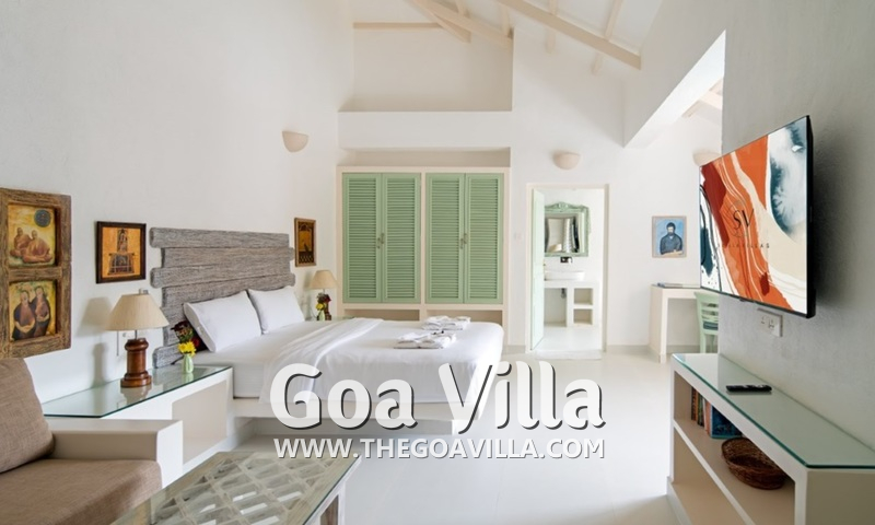 Stay in a classic Portuguese-era country home in the countryside of North Goa. Villa Grande has been aptly named, as it is a huge property spread over a large private estate with a pool, lawn, garden, and many trees. It is a 6-bedroom villa that can comfortably sleep a group of 12 guests. All the rooms in this luxury house are huge. Grande is a fully-packed villa where you will have a pool table, cards table and a steam room, which is so relaxing after a day of touring. The bathrooms have a Jacuzzi tub. Besides, this is a fully-staffed property where there is a full-time cook and a housekeeping team, so you can just relax and enjoy your holiday.