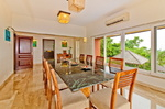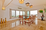 Dining room – Marble table top, sitting for 10, air conditioned. The sitting is right beside a large window offering good views. Balcony. Antique furniture, potted plants.