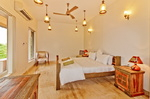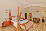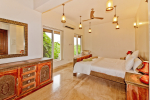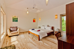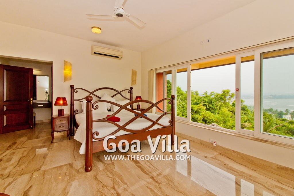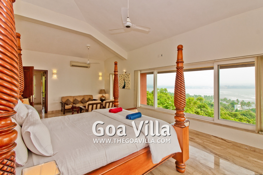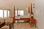 Bedrooms – All 5 bedrooms are en suite with large king beds. Modern Indian furniture, wardrobe, sitting area, paintings, side table, lamp shades, large sliding windows offering sea/river views, balcony. All bedrooms are sea facing with an exit to balcony.