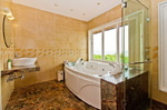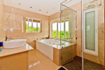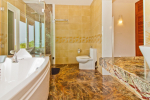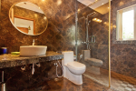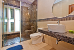 Bathrooms – Modern bathrooms with shower cubicle, rain showers, sink, toiletries, towel rack, large mirror, imported marble.