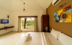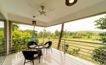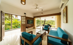 Bedrooms – Up to 10 guests can sleep easily in the 5 bedrooms in this villa. All the rooms have large king beds with high-quality linen, which will make you fall asleep quickly. They also have large wardrobes, dressing areas, study tables, and televisions. Air-conditioners keep you comfortable during the mid-day heat. Some bedrooms open to private balconies with a seating area. You can have your morning coffee or evening drink here while enjoying the greenery. The others have ceiling-to-floor glass windows that offer the same views.
