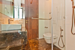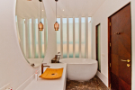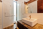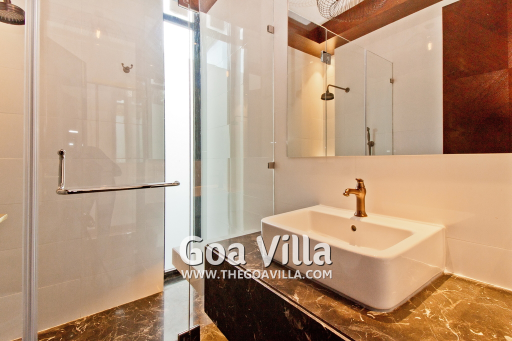 Bathrooms – Modern faucets, sink, shower cubicle, towel rack, imported marble, large mirror, mosquito repellant.