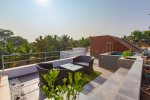 This will give you the feeling of harmony and fluid spaces that makes music for all your senses. The large cantilevered pergola that casts ever-changing shadows in tandem with the sun is like the song of light. The deep orange Patra Devi stones are in resonance with the flowering Spathodeas trees. A double height entrance and tall slender finned windows welcome diffused light into the villas in tune with the shifting moods outside. This creates a sense of perfect harmony between human, building and nature. A prestigious residential estate of luxury home with a private pool, located in the chic and trendy Vagator neighbourhood of North Goa, within short distance of the beach, the popular Pool Bar in W Hotel and excellent restaurants such as Mahé, Bombay adda, etc. Approx. distance (in kms):