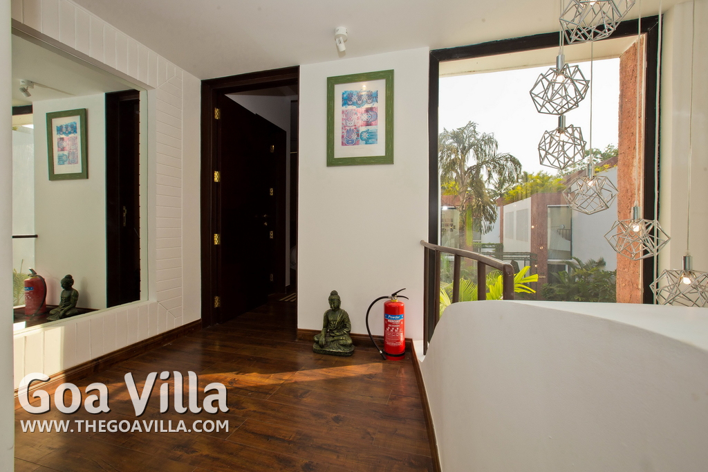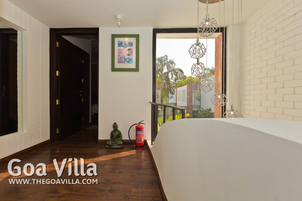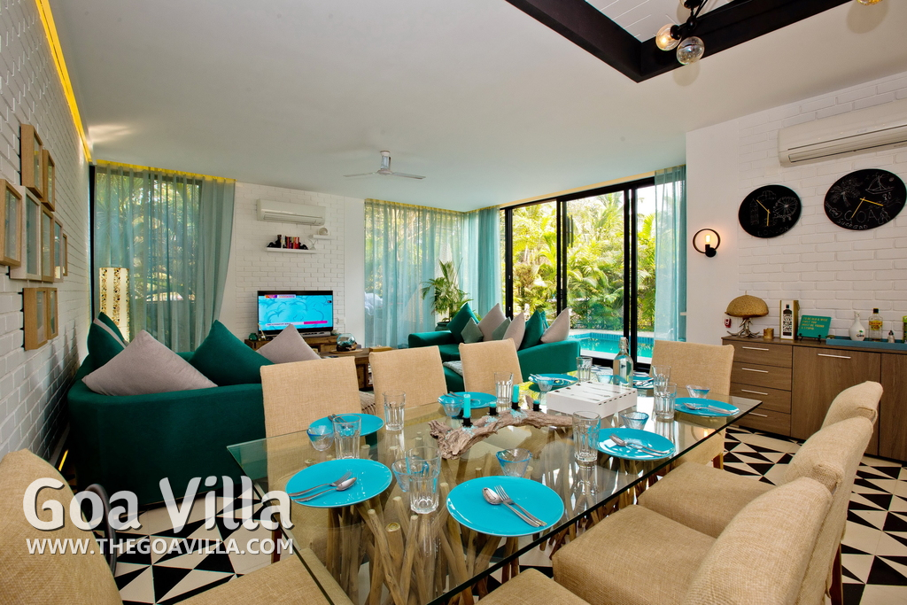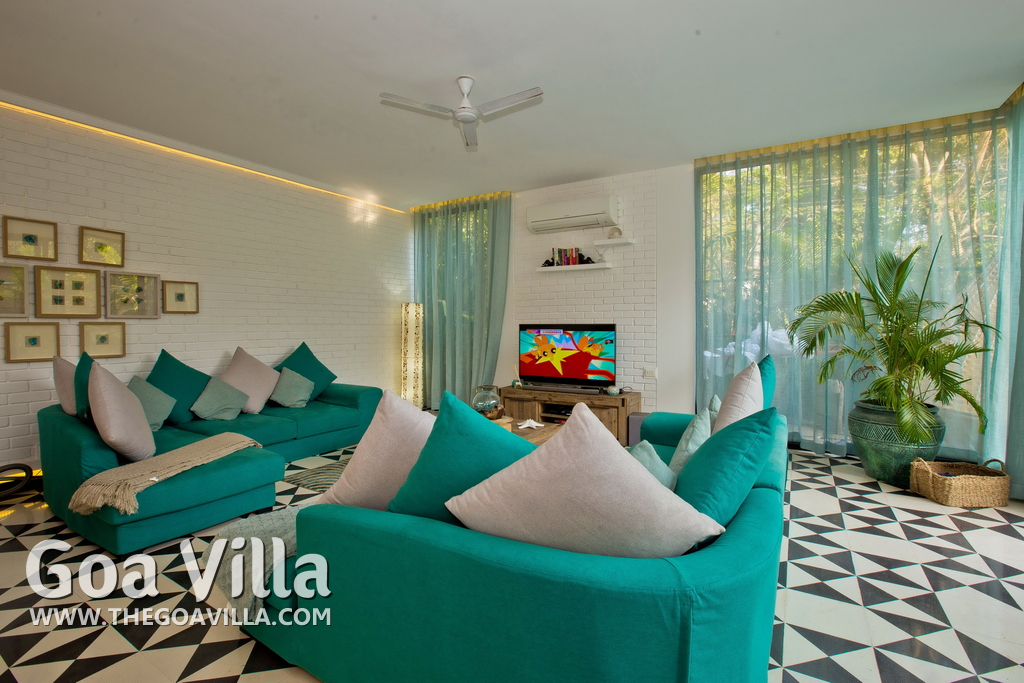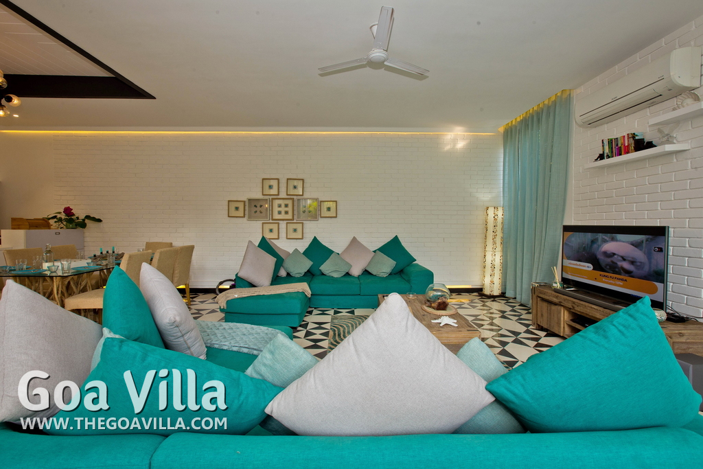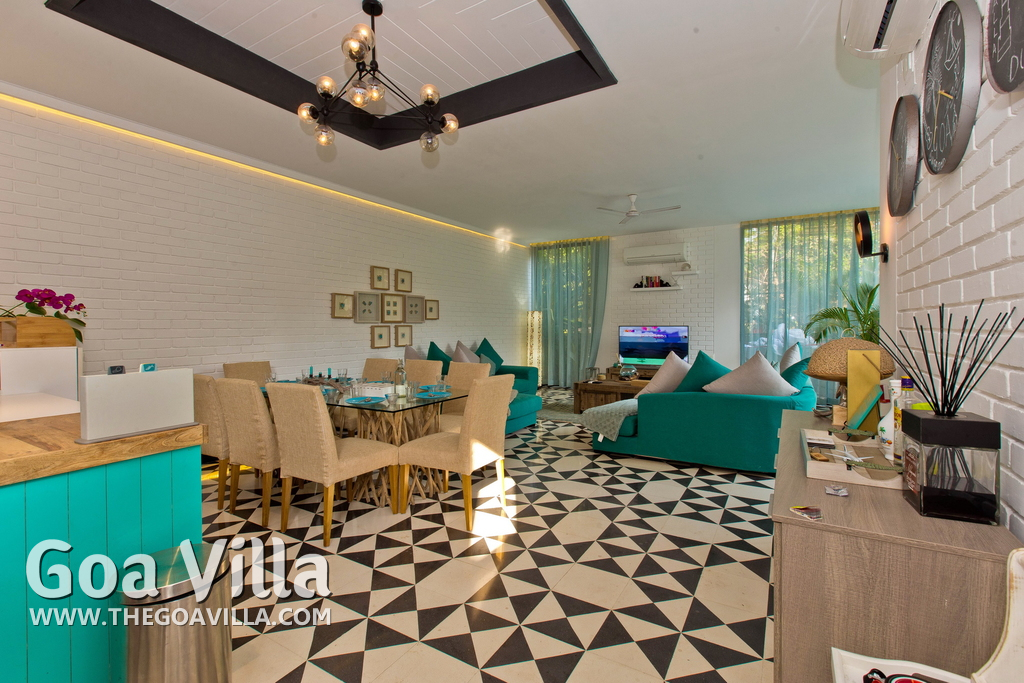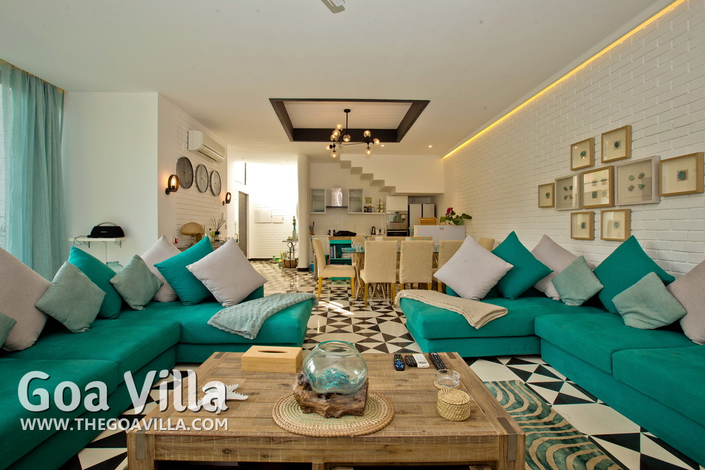 A North Goa holiday villa for rent in a posh gated community. Prestigious residential area. The house comes packed with modern amenities and facilities. Good choice for a luxury vacation in a peaceful neighborhood.