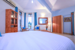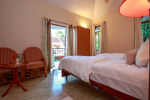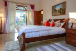 Bedroom #1 en-suite. Large king size comfortable bed, cushions, rugs, beautiful furniture, lighting, painting, big balcony with a very comfortable sofa overlooking the pool and garden! Big bathroom with bath tub.