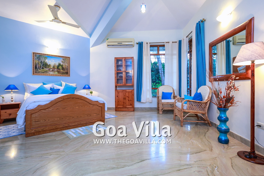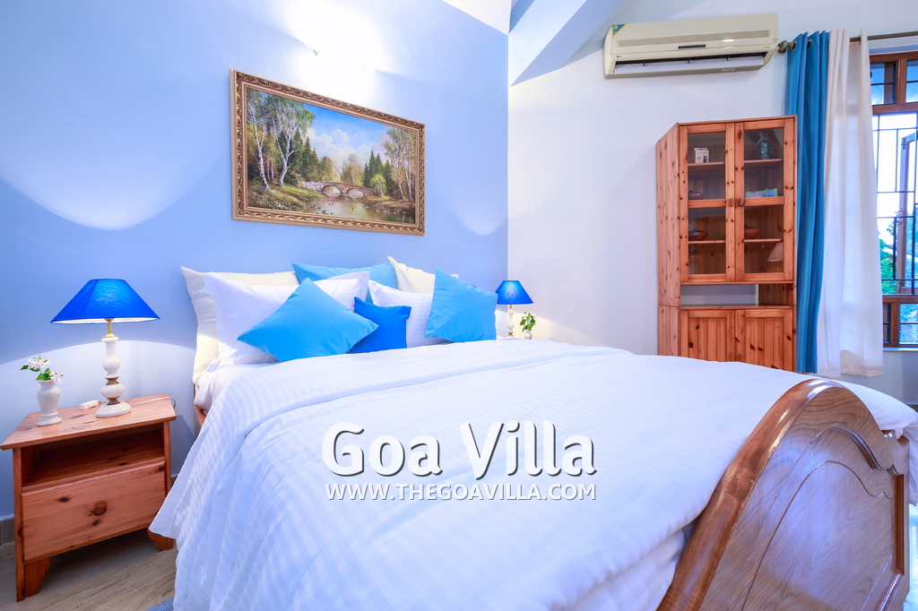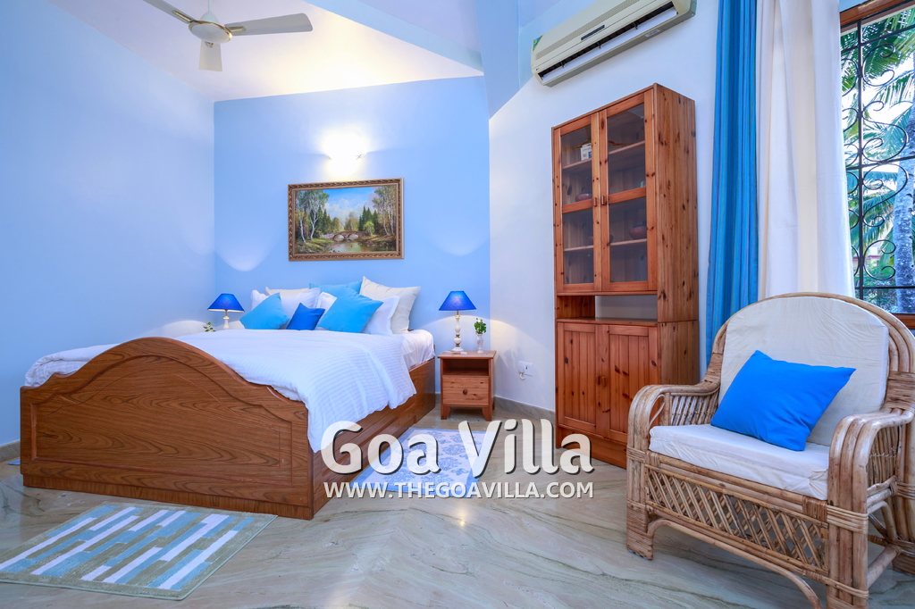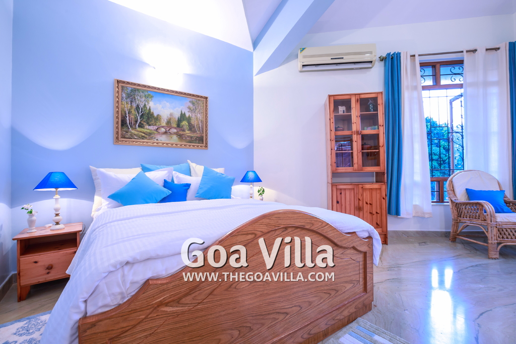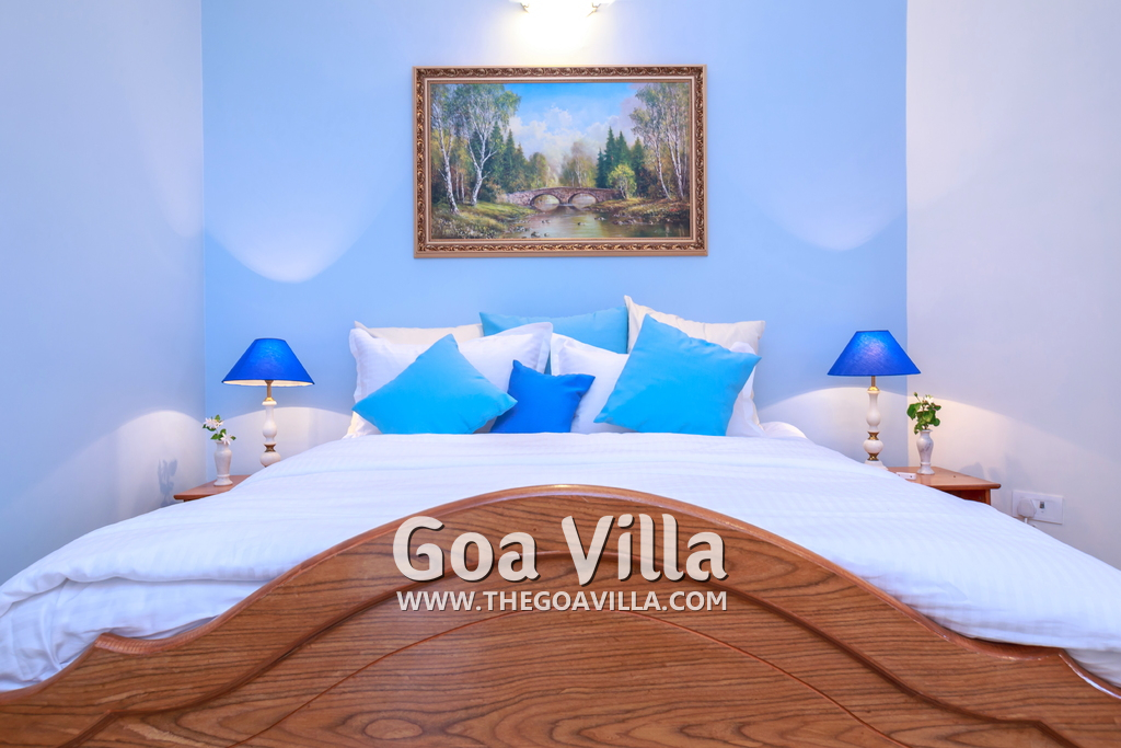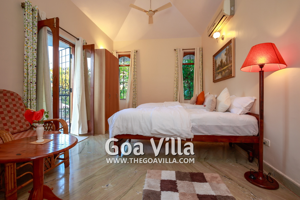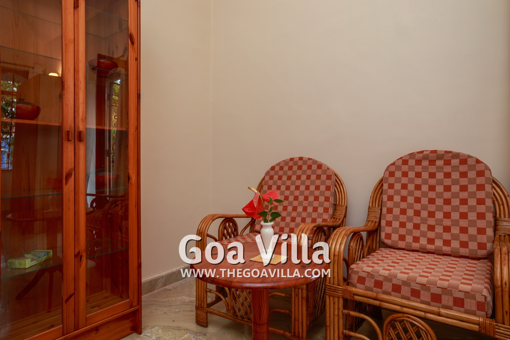 There are 4 bedrooms in this private villa, including one room for the kids. All the rooms are air conditioned and have beautiful furniture, comfortable beds, rugs, paintings, and decorations. The bathrooms are nice and clean with separate shower areas, bath tubs, modern faucets, cabinets, toiletries and rugs. This is a great villa in Colva for 3-6 people, who want to have a wonderful vacation in complete peace and enjoy their privacy.