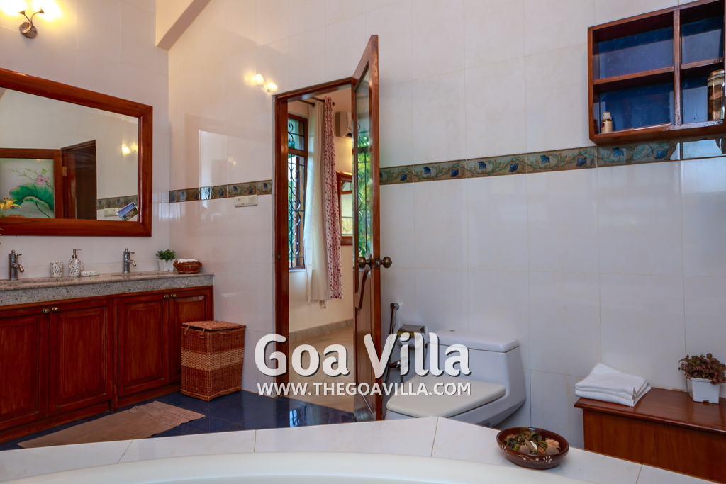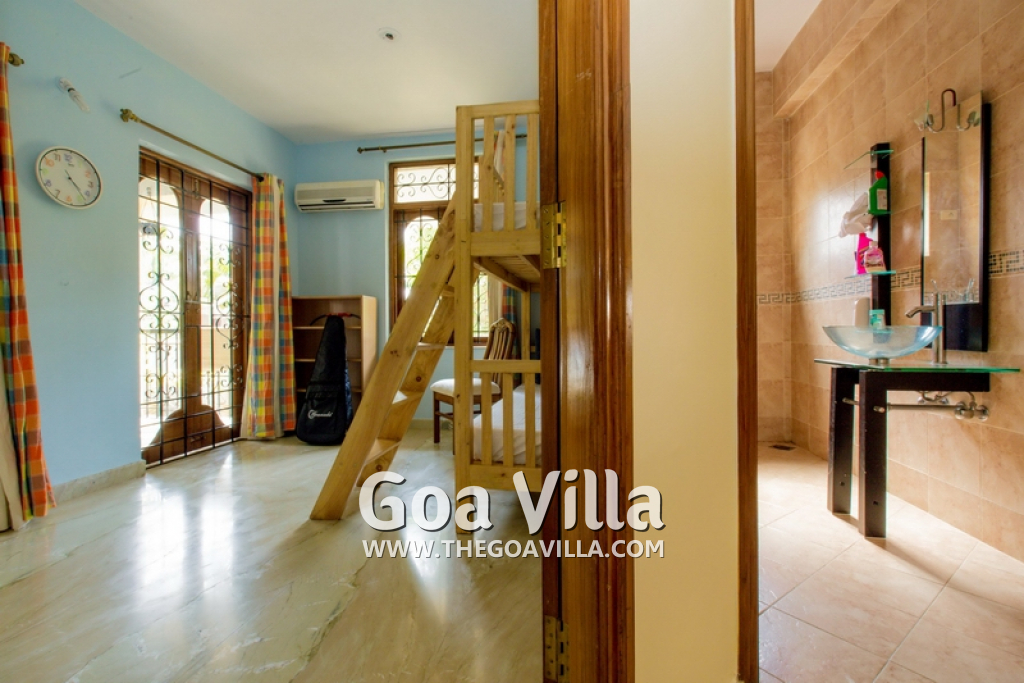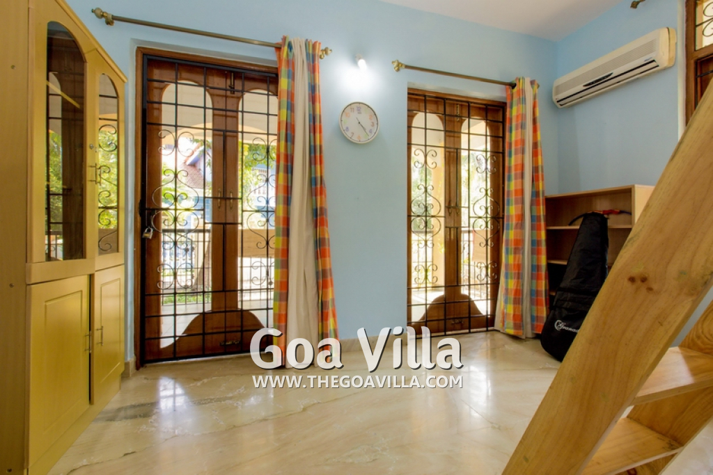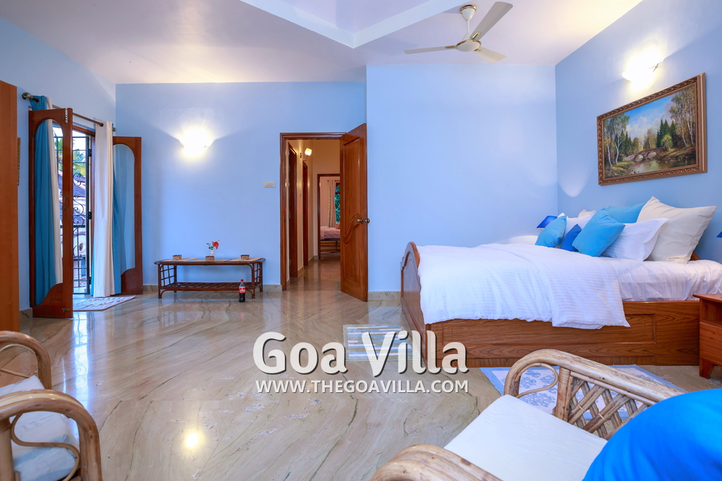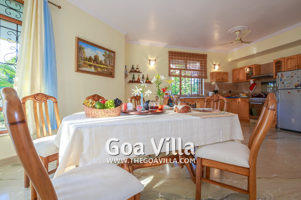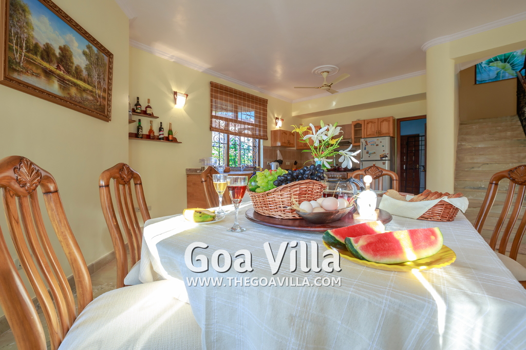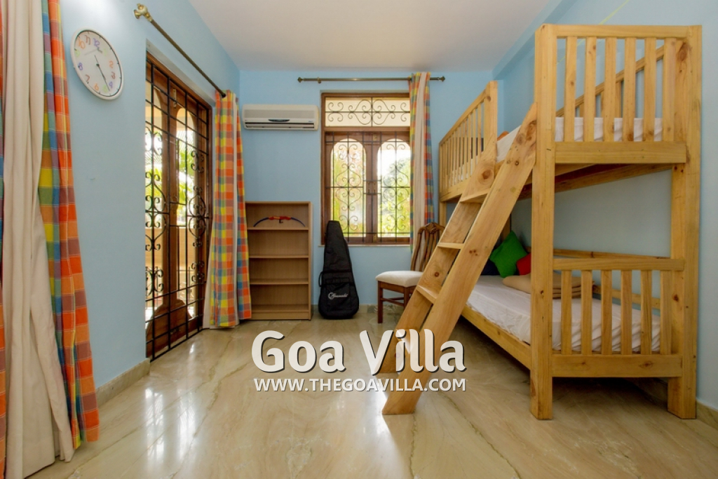There are 4 bedrooms in this private villa, including one room for the kids. All the rooms are air conditioned and have beautiful furniture, comfortable beds, rugs, paintings, and decorations. The bathrooms are nice and clean with separate shower areas, bath tubs, modern faucets, cabinets, toiletries and rugs. This is a great villa in Colva for 3-6 people, who want to have a wonderful vacation in complete peace and enjoy their privacy.