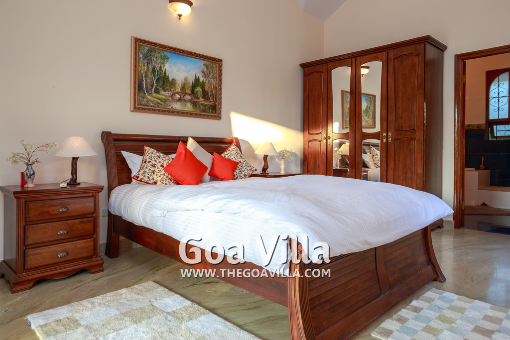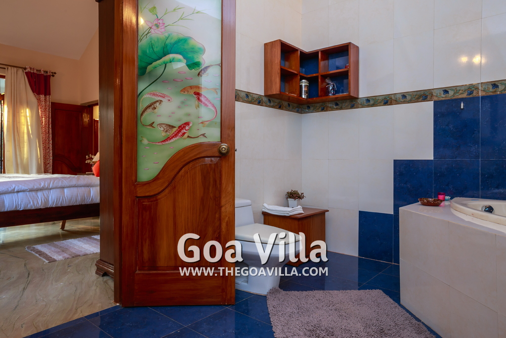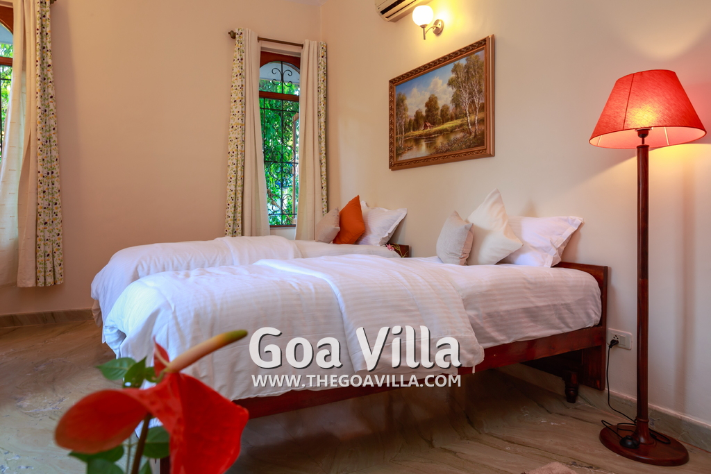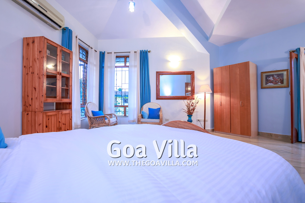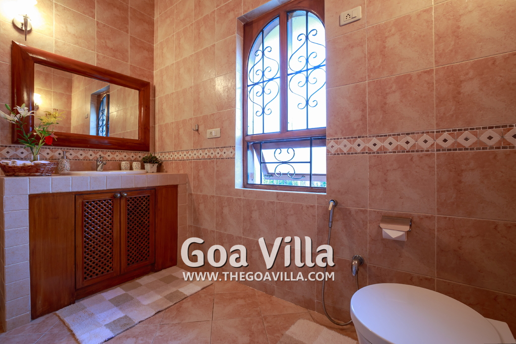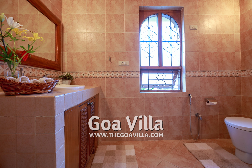 There are 4 bedrooms in this private villa, including one room for the kids. All the rooms are air conditioned and have beautiful furniture, comfortable beds, rugs, paintings, and decorations. The bathrooms are nice and clean with separate shower areas, bath tubs, modern faucets, cabinets, toiletries and rugs. This is a great villa in Colva for 3-6 people, who want to have a wonderful vacation in complete peace and enjoy their privacy.