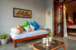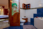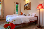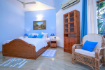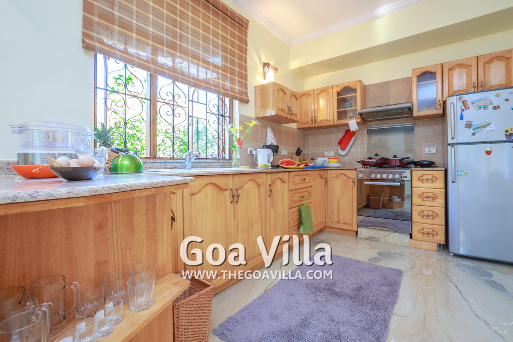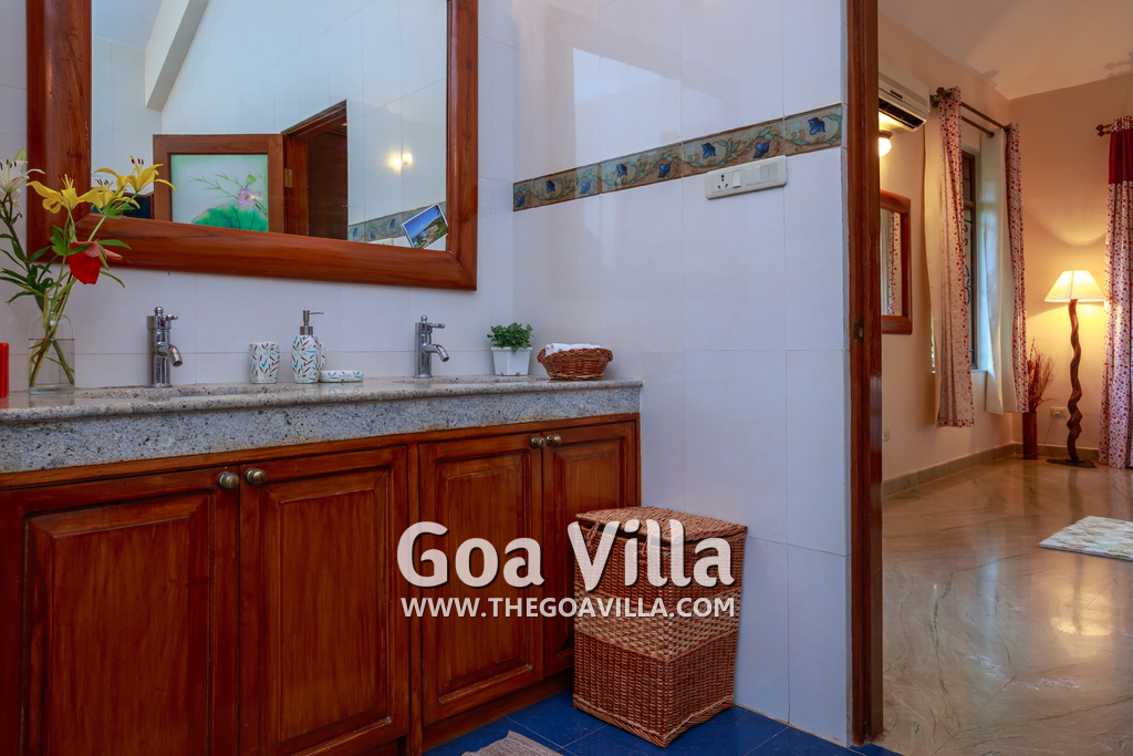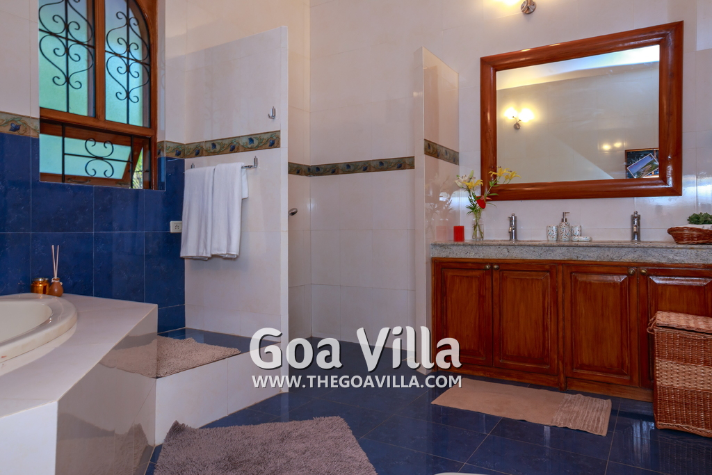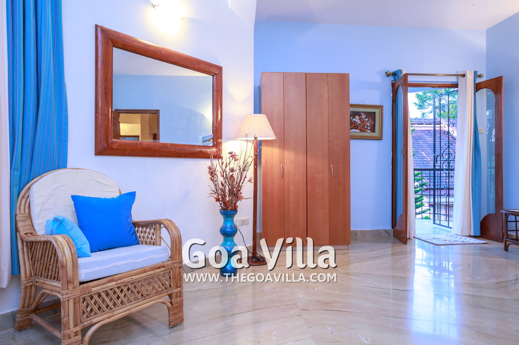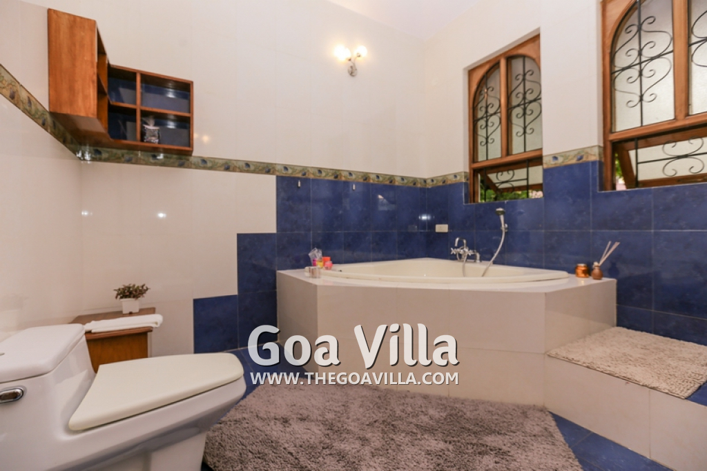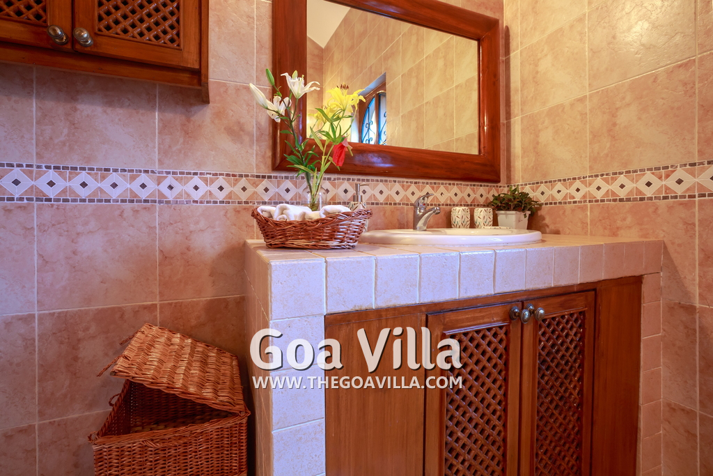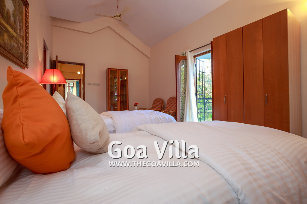 There are 4 bedrooms in this private villa, including one room for the kids. All the rooms are air conditioned and have beautiful furniture, comfortable beds, rugs, paintings, and decorations. The bathrooms are nice and clean with separate shower areas, bath tubs, modern faucets, cabinets, toiletries and rugs. This is a great villa in Colva for 3-6 people, who want to have a wonderful vacation in complete peace and enjoy their privacy.