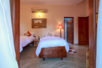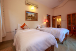 Bedroom #2 – the Pink room (247 sq. ft, 23 square meters). This room has twin beds that can be joined if needed. Comfortable beds, cushions, lighting, painting. Modern furniture. Attached balcony.