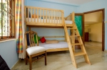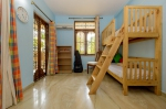 Bedroom #4 – the kid’s room, on the ground floor. Bunk beds for 2 children. Wide wooden ladder. Musical instruments. Toys. Cabinet. Air conditioned.