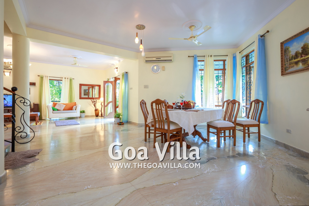 This villa is located at a quiet corner of Colva, away from the crowds. It is in a residential area with a lot of greenery. However, both the Colva and the Benaulim is just a 5 minutes drive away. Restaurants, ATMs, banks, currency exchange, shops, cafes, and beach shacks, tattoo parlors and water sports are all at a close distance.