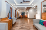 - The living room decorated with supreme quality furniture with large TV for a perfect quality time together. The living room opens up to dinning and kitchen.