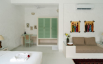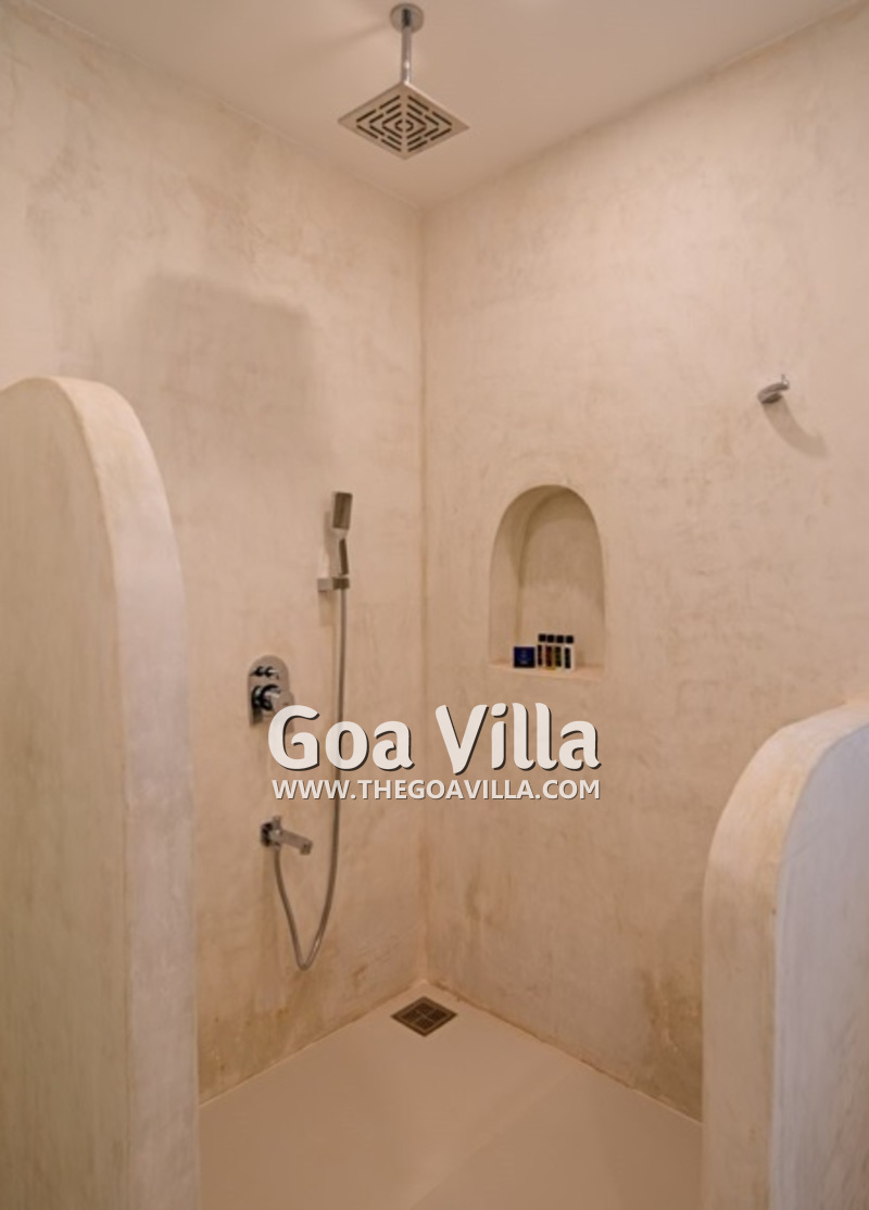 Bedrooms – There are 5 elegantly furnished bedrooms in this villa with a total of 7 double beds. Two of the bedrooms are in a loft room. You can approach the lofts through a staircase that goes up from the bedrooms. they are perfect for young children. All the beds have high-quality linen. They have unique headboards, which provide a rustic feel. The bedrooms also have satellite televisions, small libraries, study tables, wardrobes, and seating areas. Each bedroom has a mini refrigerator with a mini bar.