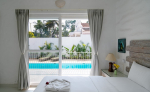 Swimming Pool – Villa Majestic has a private swimming pool, exclusively for the guests staying here. On the pool deck, you will find several loungers and chairs. This is at the backside of the property, away from the street. And at the front side, you will find a wonderful courtyard and a small garden. There are seating areas here for you to enjoy the greenery.