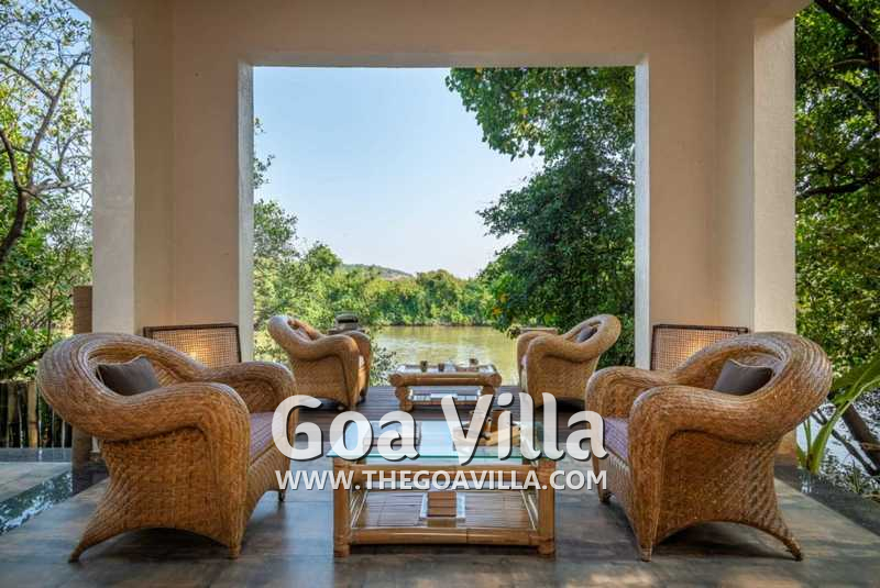 This is a huge 8-bedroom luxury villa for rent spread over a sprawling 1-acre private estate. It offers complete privacy and superb river views.