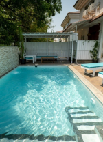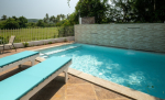 Swimming Pool – You will have your own exclusive swimming pool when you stay in this holiday villa for rent. It is a fantastic pool with two waterfalls, which the kids always find entertaining. There are several loungers on the pool deck where you can relax and let the sun dry you naturally after a dip. There is a shaded poolside cabana as well with a sofa. On one side, you will find a garden and lawn with an outdoor dining table.