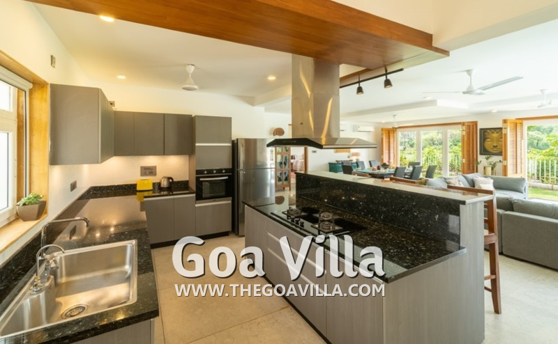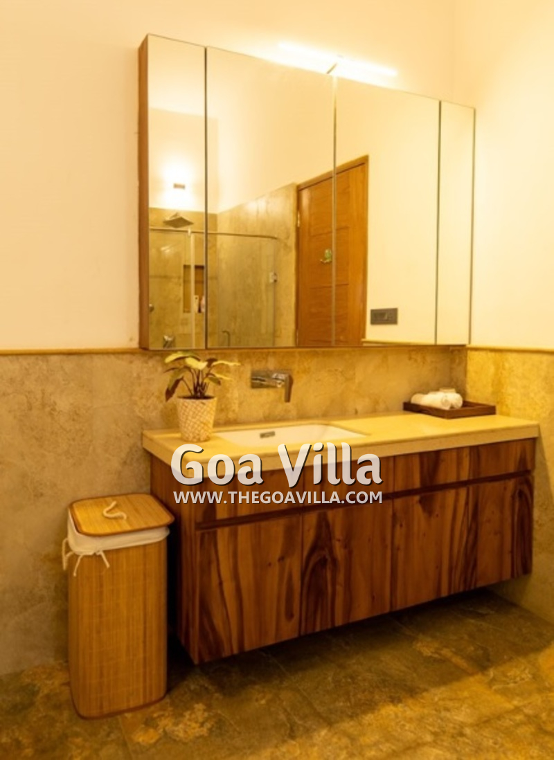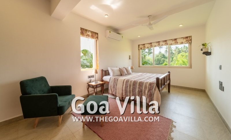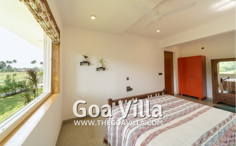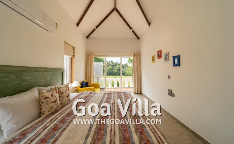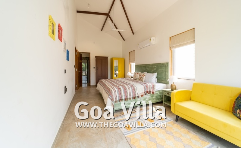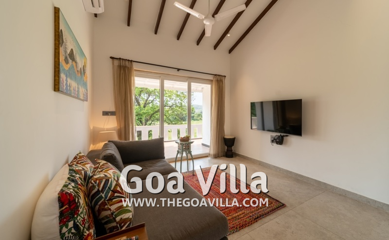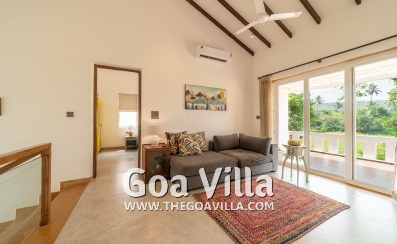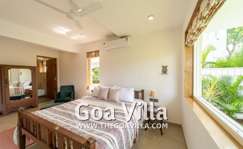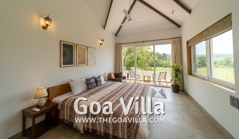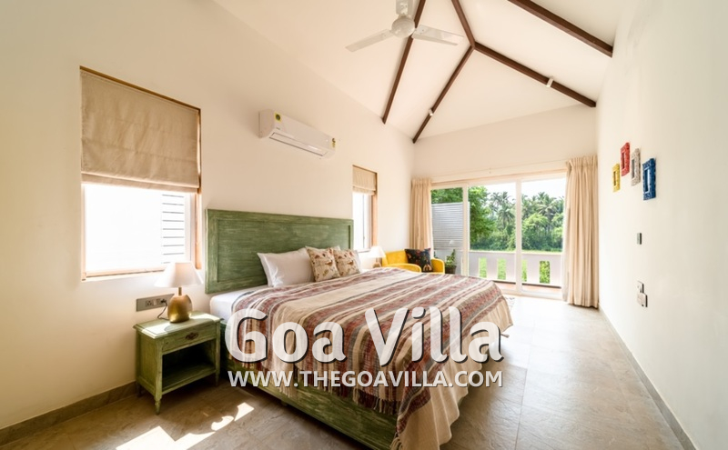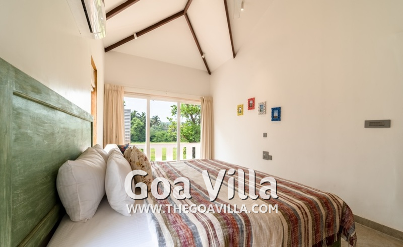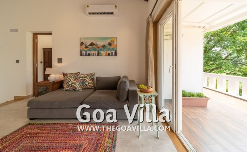 Bedrooms – Mi Vida is a small North Goa villa for rent with just three bedrooms. They are all air-conditioned and have huge double beds that can easily sleep two guests. A small child can also sleep with her parents. Additionally, the bedrooms also have a sofa bed where an additional one more guest can sleep. They all have large wardrobes too. But the striking features of these bedrooms are the large terraces that you can access through floor-to-ceiling glass sliding doors.