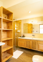Bathrooms – The three bedrooms are all ensuite. The bathrooms have shower cubicles with rainwater showers, washbasins with modern faucets, bidets, and large mirrors. One bathroom has a bathtub.