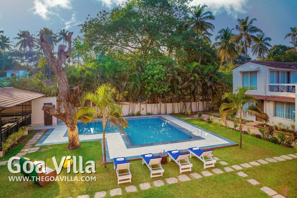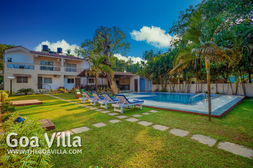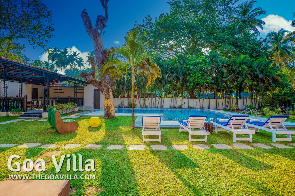 Swimming Pool – There is a central swimming pool in this North Goa property that is shared by all the villa guests. The large pool is surrounded by a lush garden and lawn with several tall trees. Relax in the loungers beside the pool or enjoy a dip in the water.
