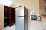 - The kitchen has a refrigerator, gas stove, microwave a set of necessary utensils.