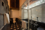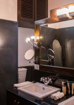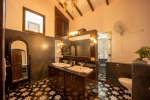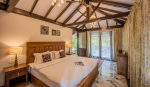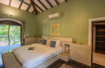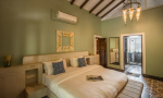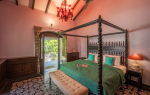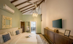 Bedrooms – Villa Rose is built over two floors. The ground floor has 1 bedroom, which is by the pool. Take the stairs to the first floor for the remaining three. Bedroom #1 has a unique earthen design. Bedroom #2 and #4 both have classic wooden beds while bedroom #3 has an antique four-poster. All of them have large king beds, wardrobes, dressing and seating areas. They are air-conditioned and have blackout curtains. Each individual bedroom provides direct outdoor access. The master suite has a smart TV.