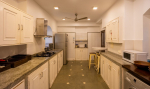 Dining, Kitchen – Villa Rosa’s formal dining area is in one side of the living space. The table can seat 8 guests. A door from here opens to the poolside patio and lounge room. There is a big-sized kitchen with an oven, microwave, refrigerator, washing machine, and various other appliances. You will also find a small breakfast table here. Utensils and cutlery is provided at the villa