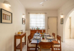 Dining, Kitchen – An arched doorway leads from the ground floor living room to the dining area. It has a 6-seater table. Of course, you can also have food outside if you want. The kitchen has an oven, microwave, refrigerator, toaster, kettle, and a water filter. Tableware, glassware, pots, and pans are provided for your convenience.