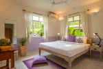 Bedrooms – With 5 well-appointed bedrooms, this property can easily sleep a large group of 10 guests. You can holiday as a large family or a group of friends. You can also host a special event in a seafront location – perhaps a birthday celebration, anniversary, an intimate wedding with the closest family members and friends, or an annual reunion. The bedrooms are spread over both the floors, all having king beds. The ones on the first floor open to their own balconies.