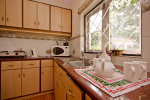 The kitchen has a refrigerator, gas stove, microwave, toaster and a set of necessary utensils. The living room has a TV with satellite channels.