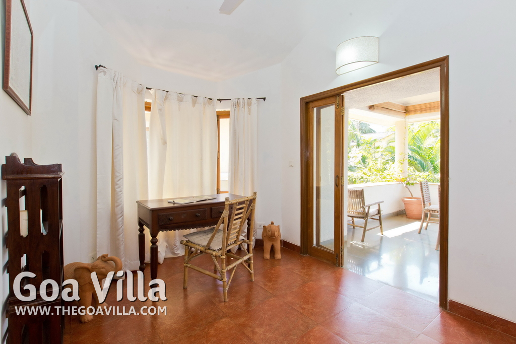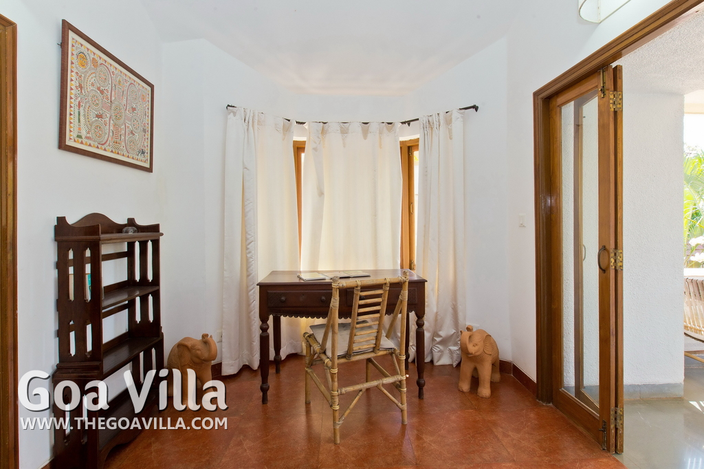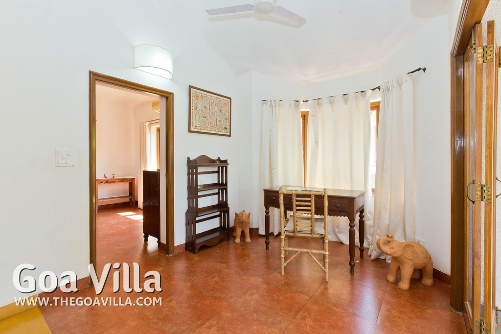 Bedrooms – The 3 bedrooms in this holiday villa for rent are all en-suite and air-conditioned. One of them is on the ground floor, while the master bedroom is on the first floor. The master bedroom has an antique 4 posted bed and a private terrace that overlooks the swimming pool. The other bedroom on this floor has a covered balcony with sitting. The ground floor room is convenient for aged people. It is close to the pool and many other amenities of the house.