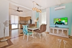 First floor: air conditioned living area, television with cable, air conditioned 6 seater dining area, well equipped modern kitchen, 1 air conditioned bedroom, double bed, with private bathroom.